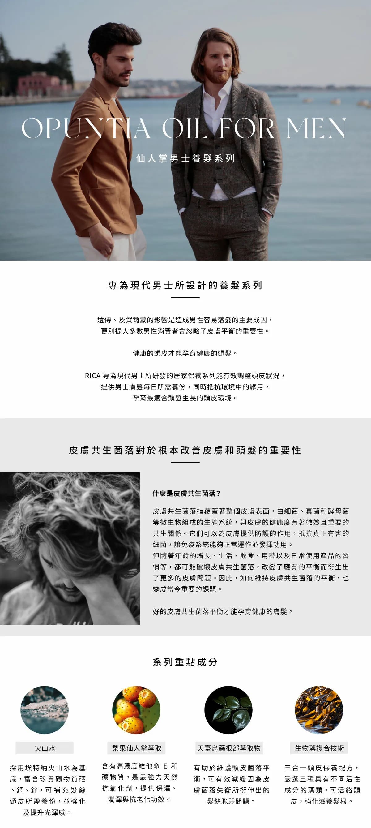 RICA 專為現代男士所研發的居家保養系列能有效調整頭皮狀況,提供男士膚髮每日所需養份,同時抵抗環境中的髒污,孕育最適合頭髮生長的頭皮環境。